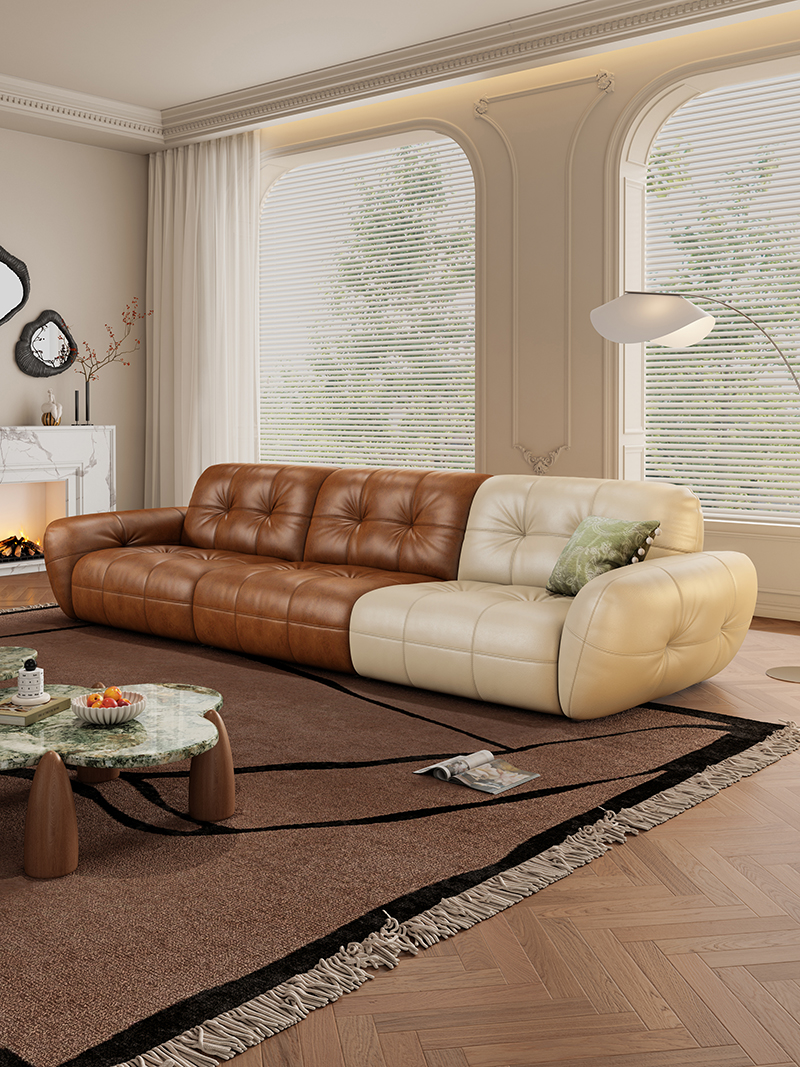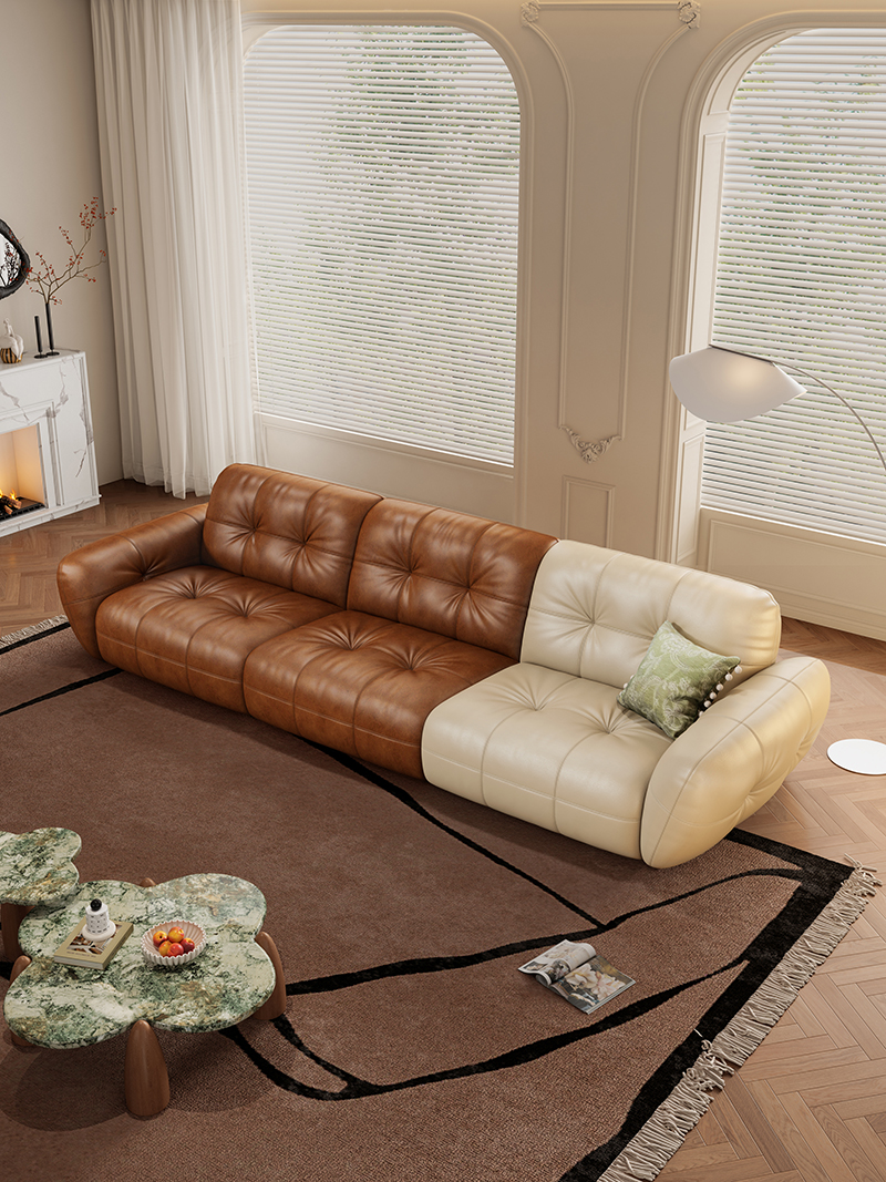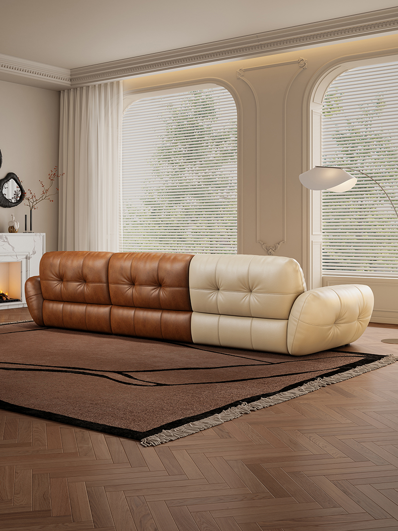 C2108#奥林匹亚-油蜡皮沙发(琥珀棕+山矾白)