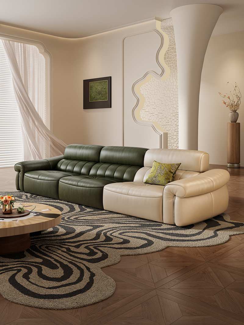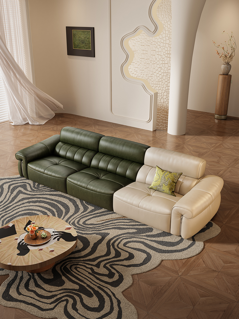 C2168#百川-真皮沙发(复古绿+山矾白)