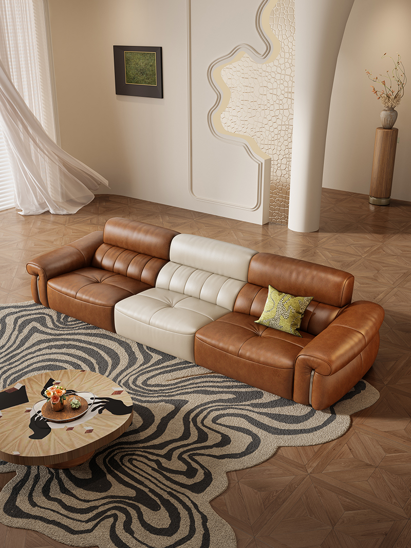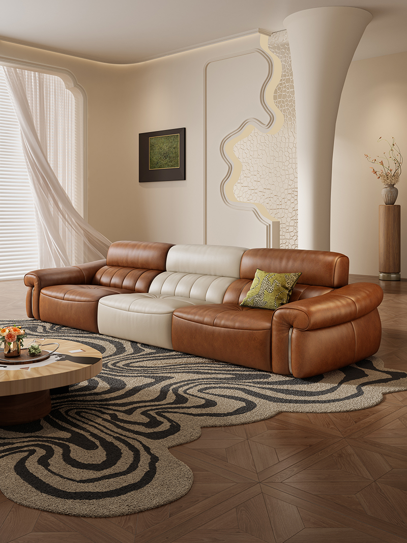 C2168#百川-真皮沙发(琥珀棕+山矾白)