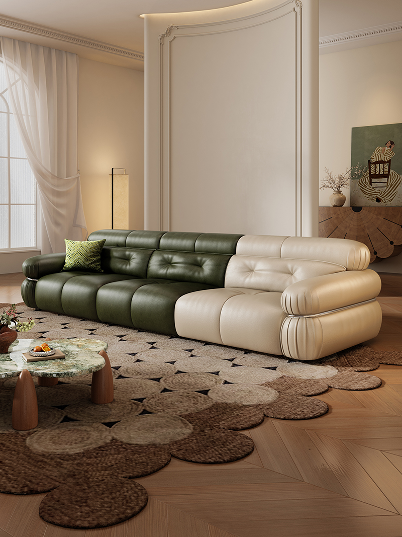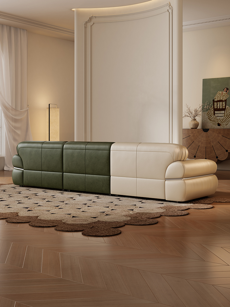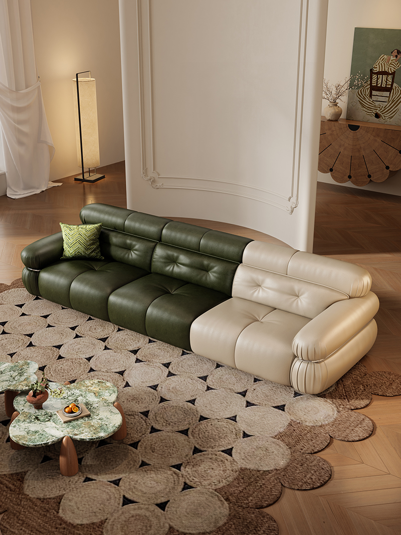 YC-15#钢牙真皮沙发-(复古绿+山矾白)-赖