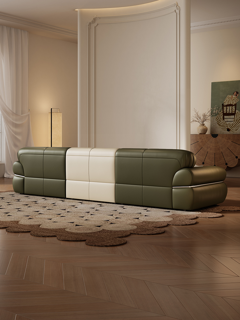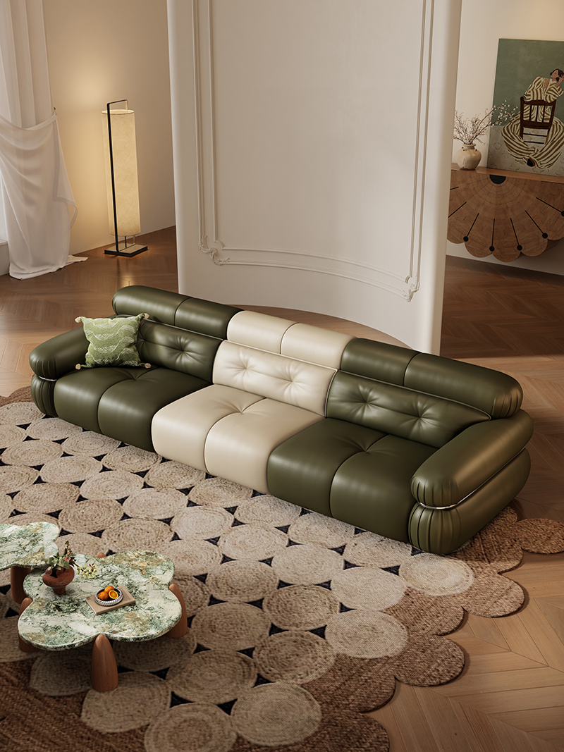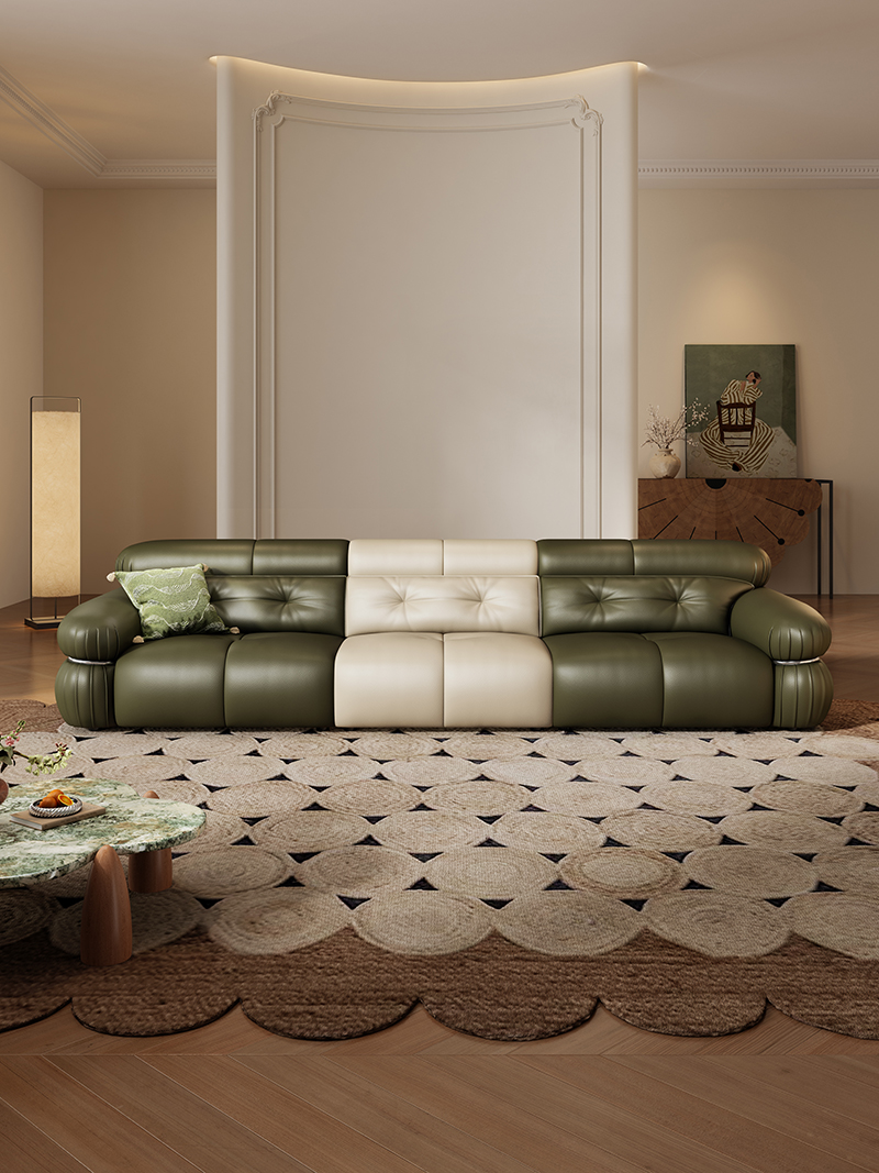 / YC-15#钢牙-真皮沙发(抹茶绿+云母白)